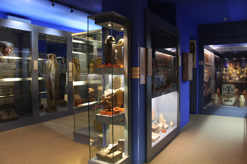 ここでは先史時代から古代エジプト、ギリシャ、ローマ時代のコレクションを見ることができます。特に古代エジプトのコレクションが充実していて、所蔵点数は約600点。第三中間期、後期王朝、プトレマイオス朝などのミイラ、棺、死者の書やアミュレットなど質の高い品々が揃っていました。また、エジプト以外にも鉄器時代などの衣装やアクセサリー、生活用具などの展示は、他の巨石文明とのつながりなども説明されていて、とても勉強になりました。それから、一階の展示室の一部のようになっている扉から入るとトイレになっていて、わかりづらいですが、茶目っ気があっておもしろいと思いました。