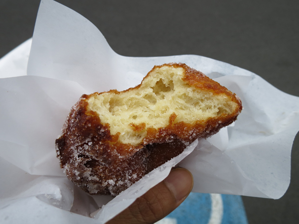 マラサダの超有名店なので行列にもめげずに並んで買いました。種類がいろいろあって、どれにしようか悩みましたが、シンプルなプレーンを注文。すると、中は穴があいていてスカスカ。全然、もちっとしていなくて、ただ甘いだけでした。混雑しているから次から次へと揚げなければならず、たまたまハズレに当たってしまったのかもしれませんが、こんなことならクリーム入りのマラサダにしておけば、まだマシだったと後悔しました。