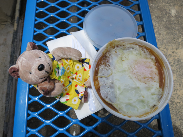 ロコモコ プレート(値段は7.5ドル)はかなりのボリュームで食べきれないと思ったので、サイドディッシュ(MISCELLANEOUS ITEMS)のロコモコ ボウル(値段は3.95ドル)を注文しました。薄いビーフパテのハンバーグの上には、どこか懐かしいようなコクのあるグレービーソースと、半熟の目玉焼きがのっていて、とてもおいしかったです。量的にもちょうど良いサイズでした。