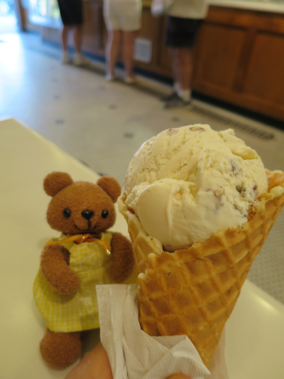 私は「バター・ピーカン」アイスを頼みましたが、コーンはワッフルコーンかシュガーコーンを選べます。値段は4.94ドル。ミルクの味が濃厚で、ピーカンナッツがごろごろ入っていて、すごくおいしかったです。店内には座席もあり、座って食べることもできました。- 旅行時期