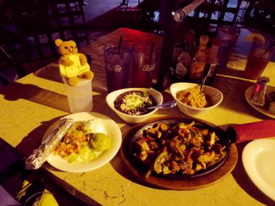 店員さんおすすめのメキシコ料理「ファヒータ(Fajitas)」をいただきましたが、ボリュームたっぷりでおいしかったです。メインはビーフ、チキン、シュリンプなどから選んで、グリルした野菜などとともにトルティーヤに巻いて食べます。