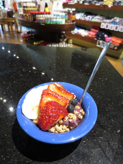 地元紙でおいしいアサイーのナンバー1に選ばれたと言うので行ってみましたが、「クラシック スモールサイズ(8.22ドル)」を注文したら、トッピングされているバナナは甘くないし、イチゴは中がスカスカで、取そこねたヘタがくっついていたり、すごく楽しみにしていったのに期待していたほどではありませんでした。