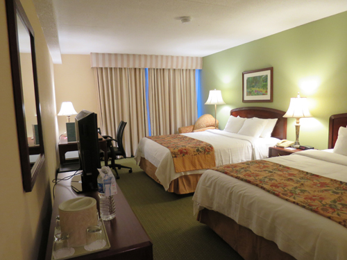 6階の部屋に泊まりましたが、窓が大きく開放感があり、ロズリン方面の夜景が見えました。部屋によってはポトマック川が見えるようです。設備はクローゼットの扉の立て付けが悪いなど多少の古さは気になりましたが、それも仕方ないと開き直れば快適に過ごせます。バスルームにはバスタブ付の固定式シャワーがありましたが、シャワーのお湯が出る部分が広くて、固定式でも不便ではありませんでした。