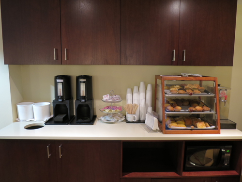 朝食は朝3時から10時くらいまでロビーに用意してあり、コーヒー、紅茶、スコーン、ペストリー、アメリカンマフィンなどしかありませんが、温められるよう電子レンジもありました。マフィンはとてもおいしくて、つい食べ過ぎてしまったほどです。