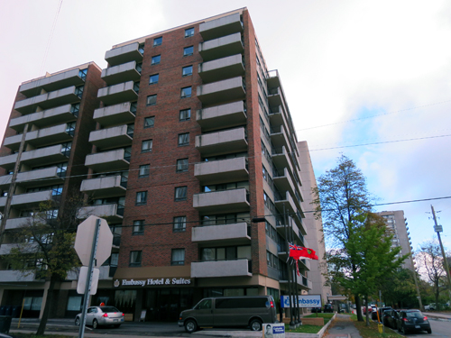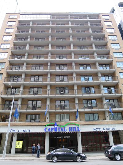 オタワの駅から95番のバスで所要10分、バス停「ALBERT / METCALFE」の目の前にあります。パーラメント・ヒルまでは徒歩数分で、リドー運河やバイワードマーケットへもちょっと距離はありますが歩いて行けました。