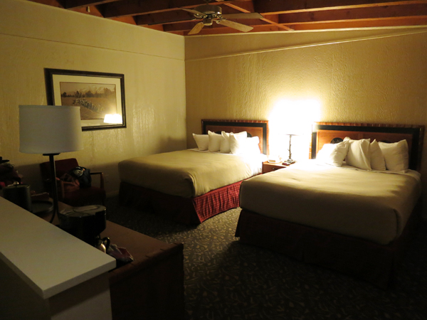 某ホテル予約サイトで一番安い「エコノミーシングル」という部屋を予約して2泊しました。園内の他のホテルに比べて、ここは安いし、その中でもエコノミーと言うくらいだから、すごく狭いかと思ったら、十分すぎるくらいスペースがあり、快適な滞在を楽しめました(エコノミーでない普通のシングルは、もっと広いようです)。