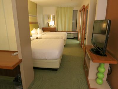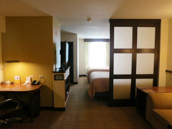 部屋は、クイーンサイズベッドが二台あり、寝室とリビングに分かれていて、とても広かったです。バスルームにはバスタブもあり、使い勝手も良かったです。