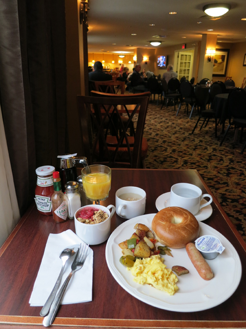 朝食はビュッフェ形式で、食パンやベーグル、リンゴやコーンフレークなどいろいろあって満足いく内容でした。- 旅行時期