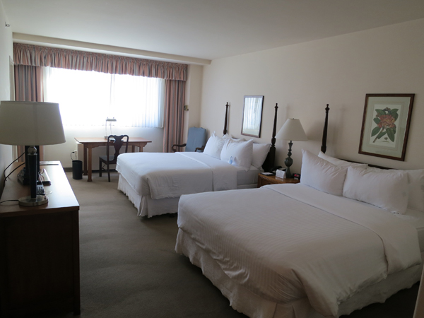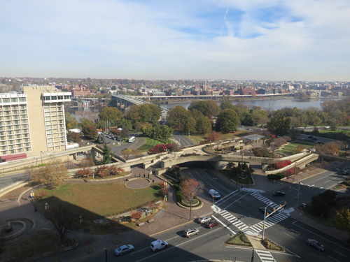 チェックインの際に「ポトマック川が見える部屋」をリクエストしたら、13階の非常に眺めのいい部屋で、バルコニーからははるか彼方にワシントン・モニュメントや国会議事堂も見えました。窓は防音ではないらしく、通りを行く車の音や、上空を飛んでいく飛行機の音が多少、聞こえましたが、眠れないほどではありません。