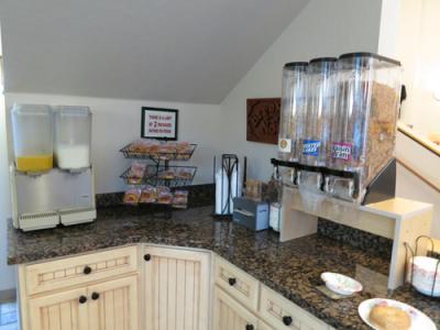 朝食はビュッフェ形式で、自分で作るワッフルメーカーなどもあり、おいしかったです。コーヒーには、某チェーン店のようにヘーゼルナッツやフレンチバニラの香り付けをするミルクも置いてありました。