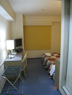 シングルの部屋に一泊しました。狭くて、窓があってないような部屋でしたが、夜7時過ぎてからのチェックインだったので、特に眺望も期待していなかったし、寝る時は真っ暗でないと寝れないので、ちょうど良かったです。部屋の中はきれいでしたが、廊下がタバコ臭かったのが気になりました。大浴場も露天風呂も良かったのですが、まわりから見えそうな気がしてコソコソ入ってしまいました。朝食バイキングはメニューが豊富で、朝から食べ過ぎてしまいました。団体客で混んでいましたが、すぐに補充してくれるし、味もおいしかったです。
