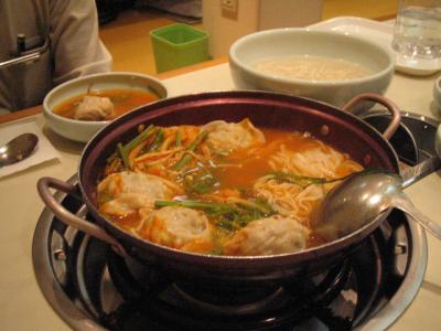 チャングムは小麦粉のかわりにスンチェで具をつつみましたが、私が食べたのはふつうのマンドゥ(餃子)鍋です。