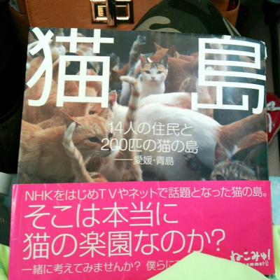 島に着くまで、島の本を皆で回し読みします。島民14人、猫200匹!!