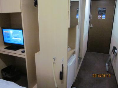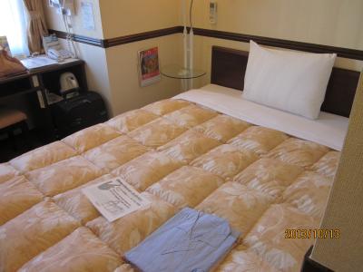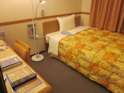 シングルで頼んだが、部屋はダブルで十分広かった。和歌山城に近く近所に商店街もある。部屋は少し古いタイプであったが、ブラシ、歯磨き、カミソリ、ブラシ、寝巻が揃っていた上に、テレビも40インチ。