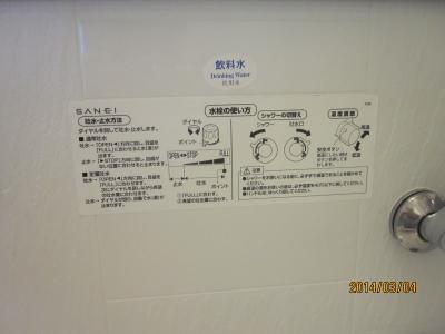 風呂の蛇口には、慣れるまで使い方が分かりにくかった。説明書きがあるが、蛇口の使い方まで掲示しなければならないような設備は考え物。