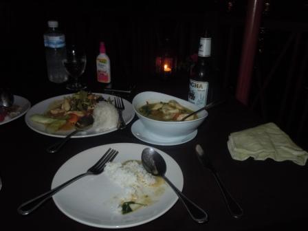 ワットアルンの夜景の明かりとテーブルのキャンドルくらいでかなり雰囲気があります。