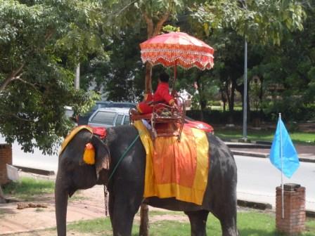 アユタヤではアジア象に乗ったままアユタヤ遺跡観光が