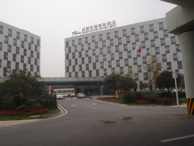 さて、本ホテルは四川省機場集団有限公司経営で、8階建て(2棟)、建築延べ面積21043?、210客室のホテルです。ビジネスセンター・マッサージ室・中国料理レストラン・喫茶室などがあります。標準料金は、標準(商務)ツィン458元・標準(商務)ダブル558元・スイート(豪華)ダブル688元・スイートツィン(商務套房)888元ですが、中国の旅行サイトではそれぞれ320・390・480・620元(朝食付き・インターネット無料)となっています。電話は028-85208899、FAXは028-85208899-1033です。現時点でのカード利用は銀聯カードのみです。なお、ホテルから空港へは連絡車(4時〜22時 30分毎)があります。