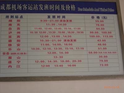 2010年12月現在の、成都双流国際空港の長距離リムジンバス時刻表です。
