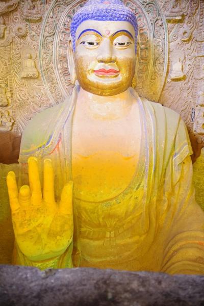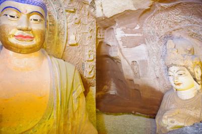 初唐期の掘られた羅漢洞で、主室と東西室に分かれ、主室は奥行き6.5m、...