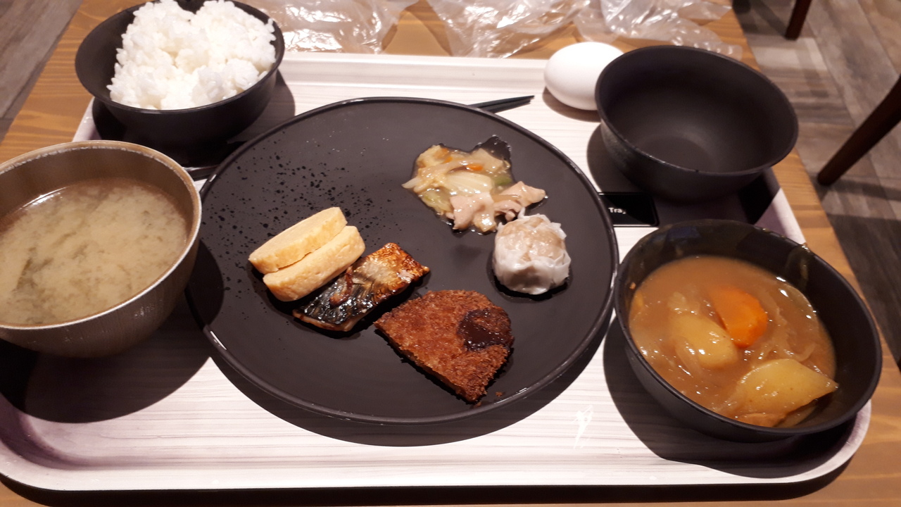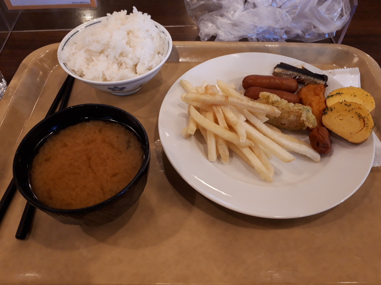 朝食はコロナの兼ね合いで定食形式(和洋中から選ぶ)でした。ザンギが美味しかったです。