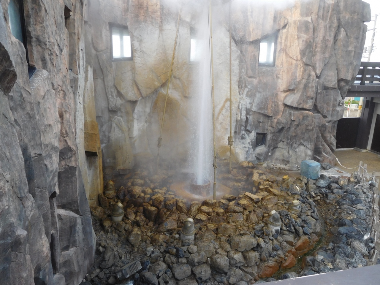 名前にもある間欠泉はなかなかの迫力。足湯に入りながら間欠泉を楽しめます。