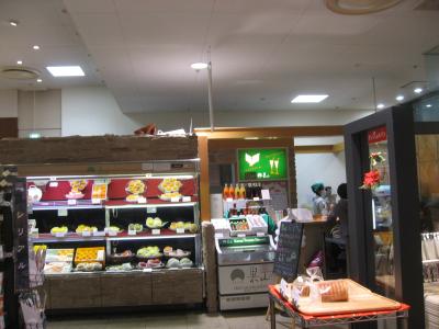 駅の改札と同じフロアーは小物や、靴などの売り場だが、奥は食品フロアー。