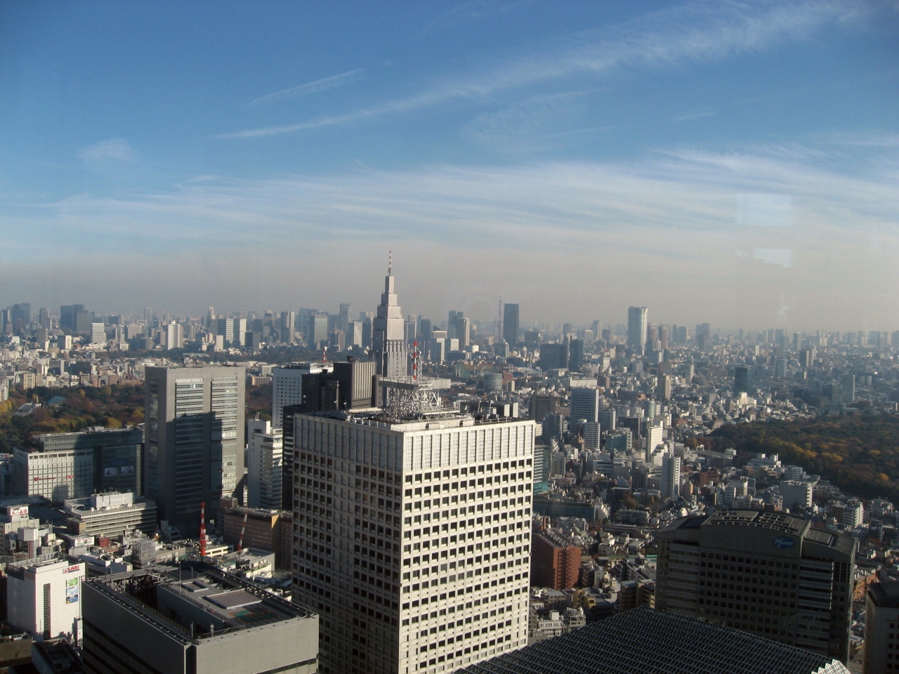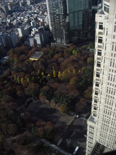 45階の展望室にはエレベーターで55秒で到着。202?の高さ。四方が窓になっているワンフロアー。真ん中はカフェエリア。新宿副都心の大きな建物や御苑、明治神宮の森などが一望の下。ひしめく東京の姿がよく分かります。結構外国の人が来ていました。