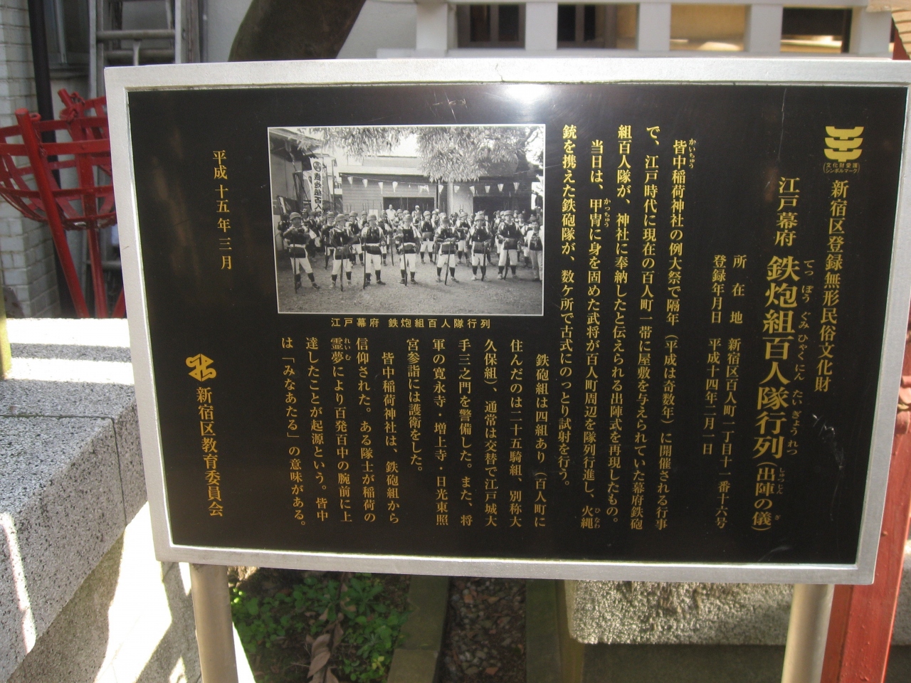 「鉄砲組百人行列」というのは聞いたことはあったのですが、ここがその縁の場所と知りました。若い人も含め、結構人がお参りに来ていました。宝くじなどのお願いかなー。