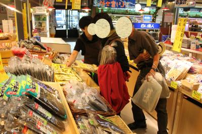 北海道はどこの市場も海の幸で充実していますが、ここでも買いたい物がたくさんありました。まだ初日なので、生ものは買わず、昆布やこまい(固い干物)など少々購入。