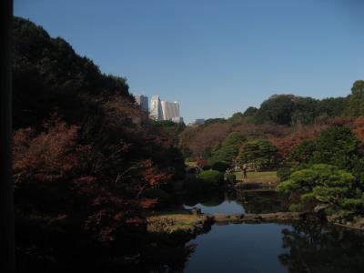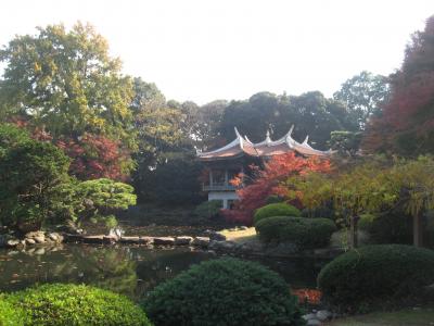 この大都会の一当地というような場所にゆったりした公園があるのは素晴らしい。紅葉は最後という感じではあったが、まだ頑張っている銀杏や紅葉があり、楽しめたし、良い写真も撮れた。日本庭園、芝生広場、歴史建造物の「御涼亭」などあり、家族連れ、カップルなどが沢山散策を楽しんでいた。