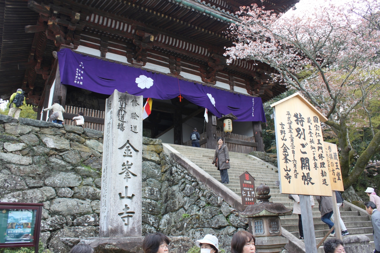 上千本で桜を見ながら歩いて下りてきた。 山の中のお寺は桜の序でにお参りでは申し訳な様な立派なお寺だった。今年は特別の年に当たるようで色々な行事が行われていた。独特の装束に身を包んだ山伏が見られたり、餅まきのお持ちを拾ったりと予定していなかった日本の伝統行事を見ることができて幸いだった。