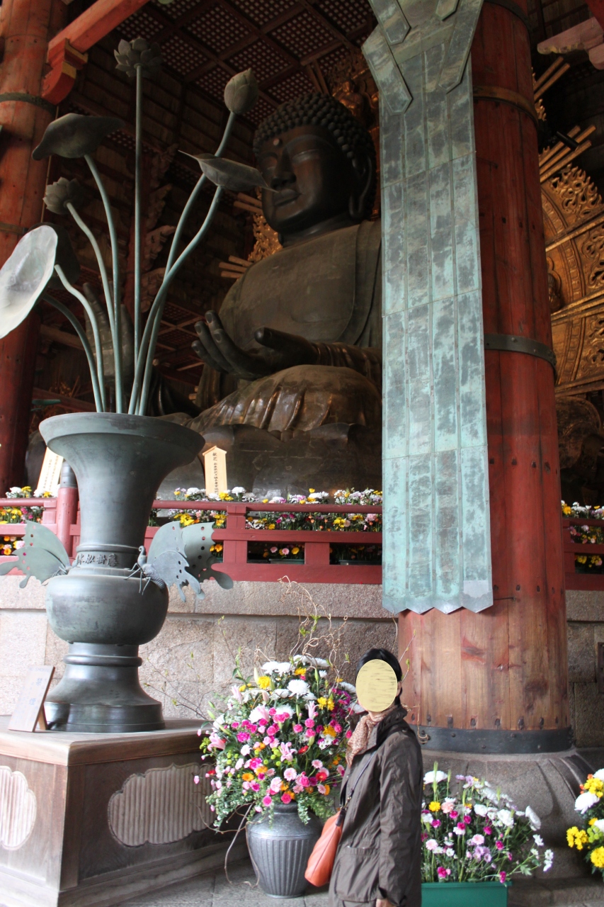 この国宝は高さが約15?、重さは約452?だそう。台座以外は何度も災害などにあって失われ、その後再建を繰り返したようだが、1300年近くも前にこのような物を作った力に驚かされる。