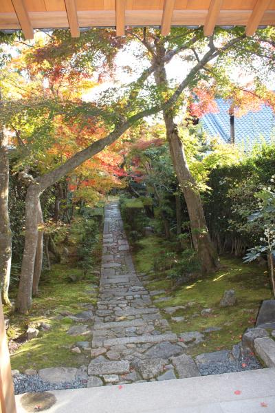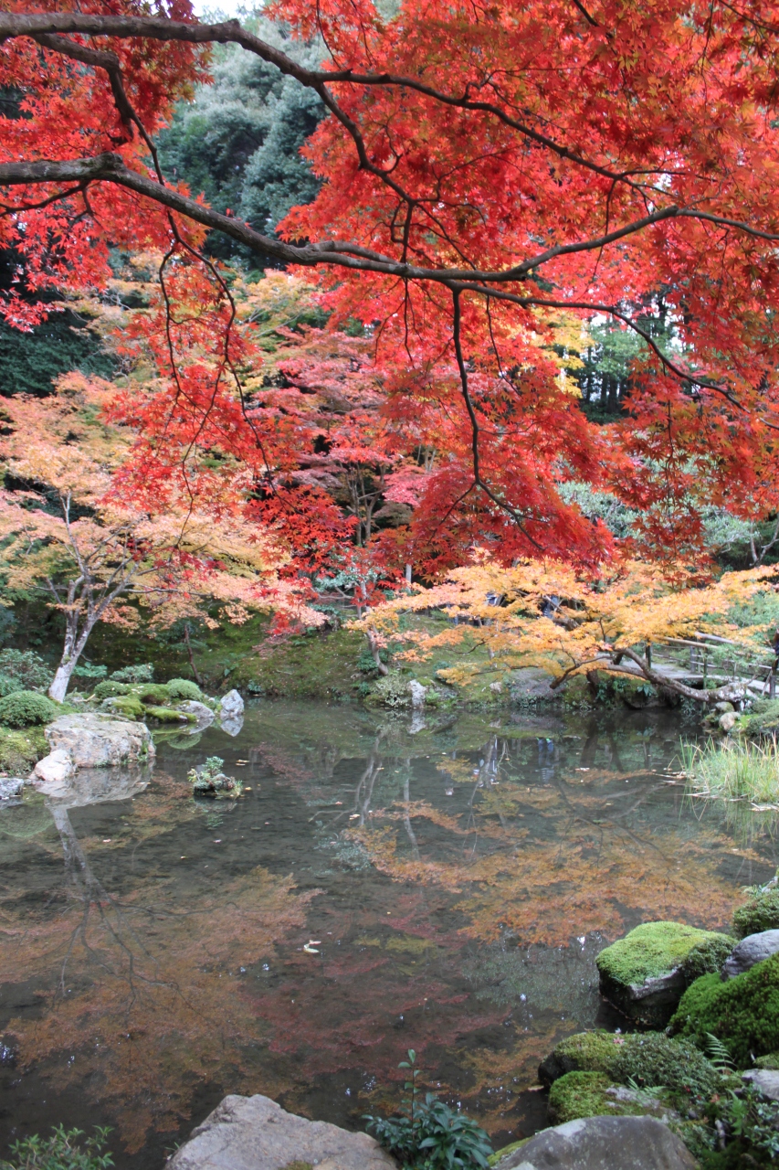 京都の秋を十二分に楽しみたいとやって来た。銀閣寺をスタートしていくつかのお寺を見ながら哲学の道に出て、真如堂、そしてこちらにと頑張って歩いてきた。真如堂のこう用が見事で、その後だったので少々地味に感じた。でも池の水と一緒に撮るとなかなか良い写真になった。