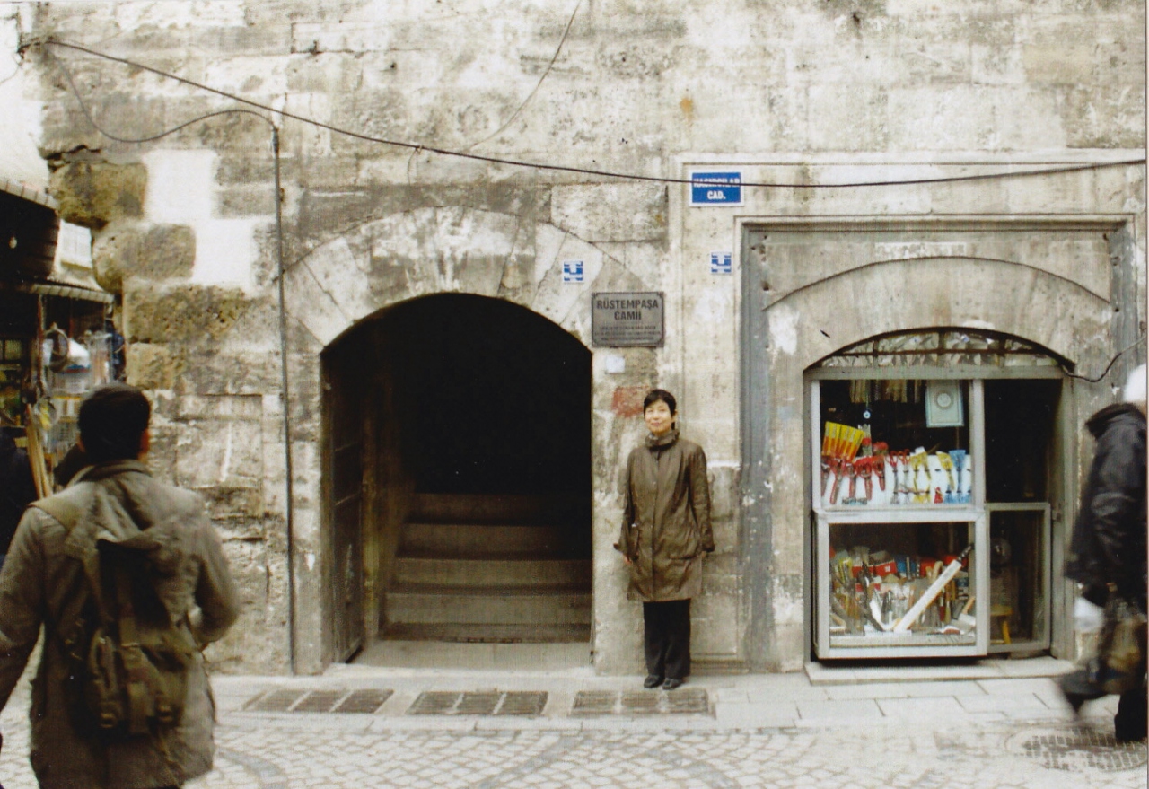 なにしろ入り口が分からずうろうろした。エジプシャンバザールの雑貨街に入り口がある。その入り口が、“美しいイズニックタイルを持つモスク”のイメージとは全く結びつかないのでなかなか見つからなかった。ガイドブックを片手に椅子を出して座っている人に聞いてみたら親切に教えてくれた。その入り口写真がこれ。