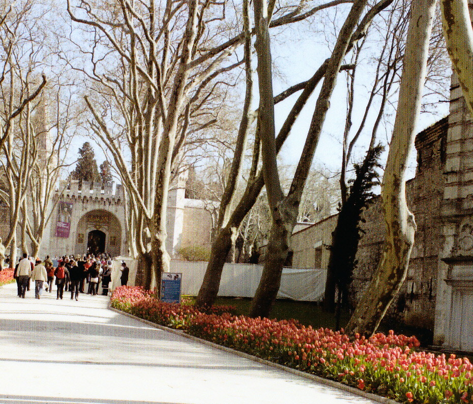 アヤソフィヤとブルーモスクの間にあるこの広場は気持ちの良い公園だ。私たちが訪れた4月はチューリップの花がたくさん咲いていた。余談だが、チューリップはオランダの花のイメージが強いが元はトルコが本場だそうだ。