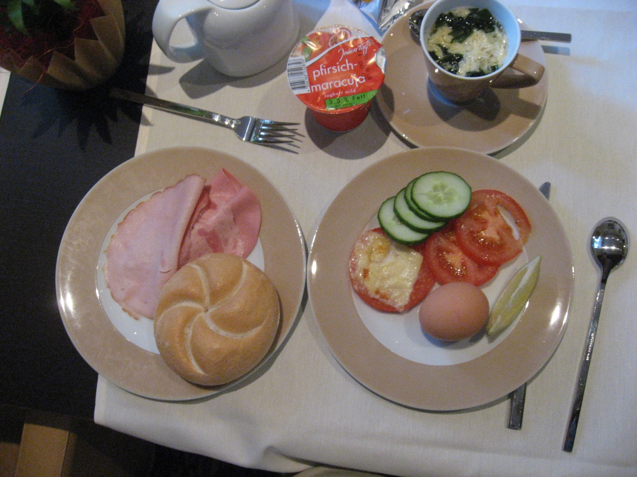 朝食付きで初日は問題なかったが、2日目は団体ツアーが多く入ったのか(日本人のツアーがたくさん。ヨーロッパにいる気がしなかったほど)席が空いてないほどで、空きそうなところをそばで待ってやっと座った。もちろん仲間とバラバラで…これは減点。
