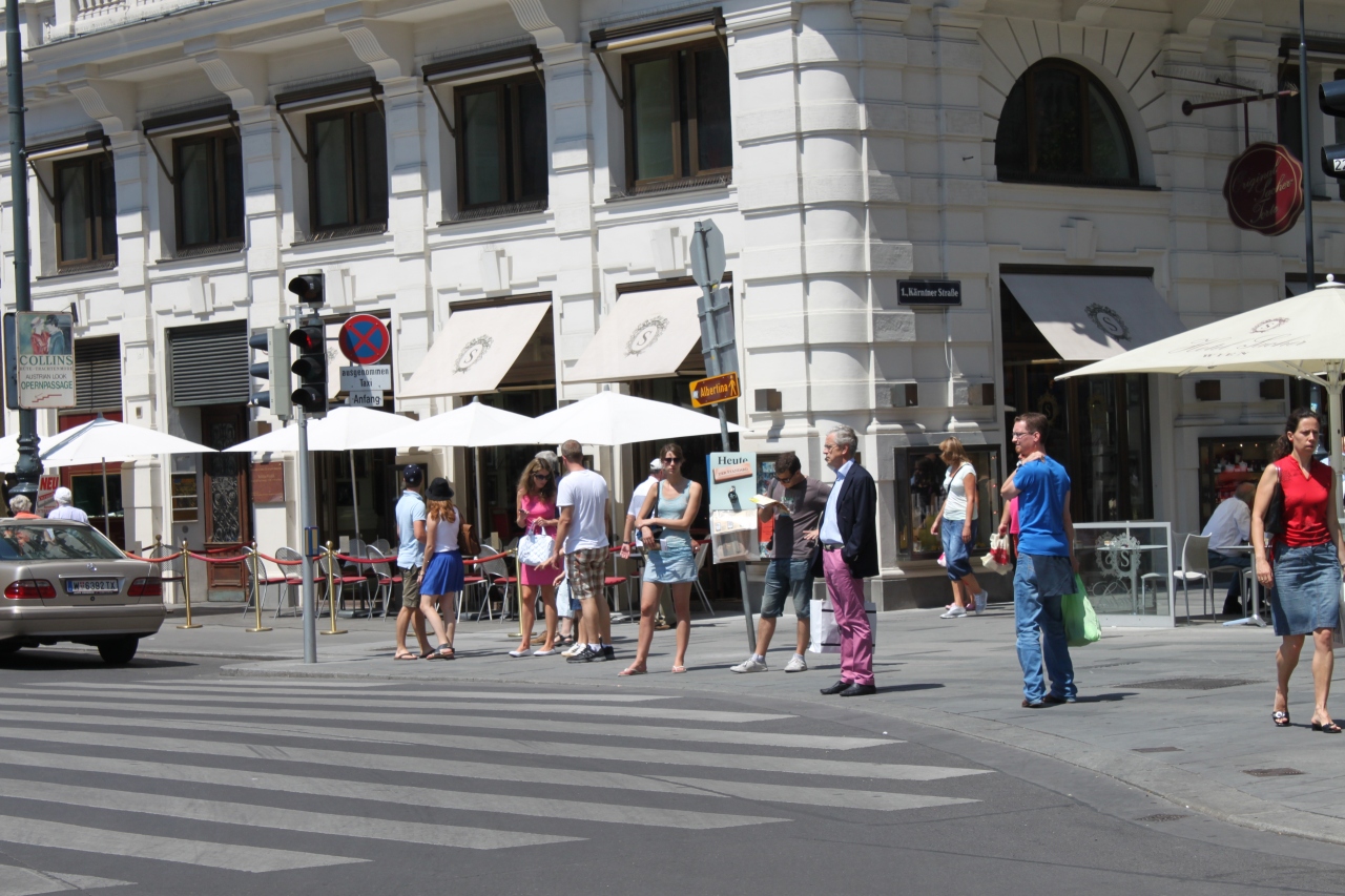 ケルントナー通りを北から南に進んできた場合、オペラリンクにぶつかったら左に1ブロック。