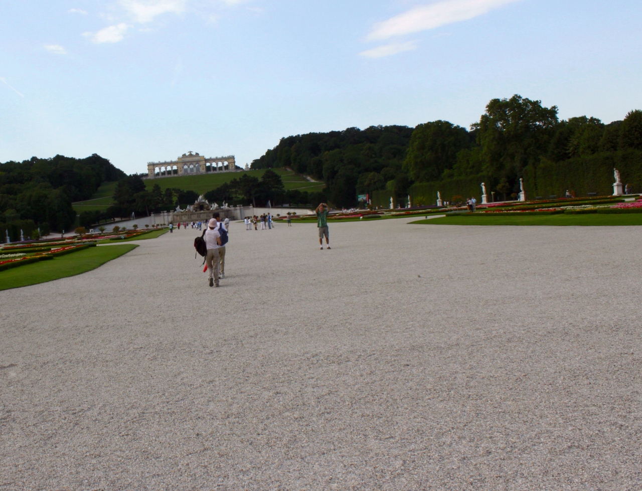 シェエーンブルン宮殿は2度目。この2年前に来たときはツアーで時間切れ。グロリエッテまでは来られなかった。なので今回のフリー旅では是非にとやって来た。ここまでは入り口からは30分くらいかかるので一休みにちょうど良い。私は日本流に言うとアイスコーヒーフロート、夫はアイスティ。アイスクリームがたっぷりで、とても美味しかった。雰囲気も良く、ここからはウィーン市内もながめられてその意味でも立ち寄る価値大。願いが叶って満足感いっぱい。