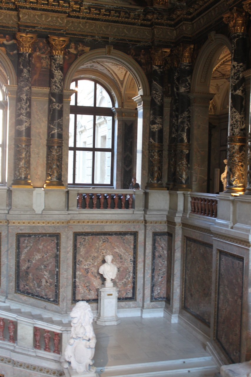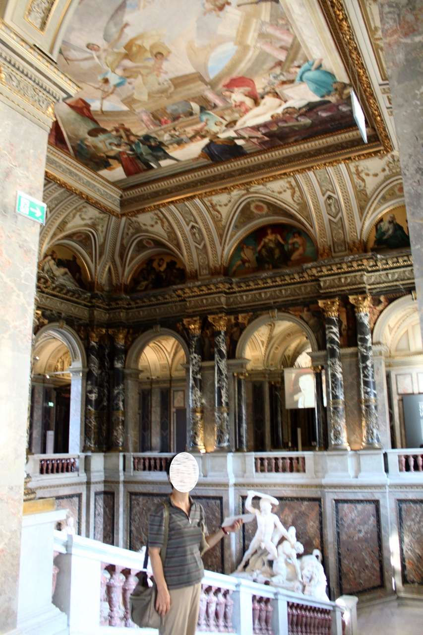 トラムの「国会議事堂」駅、下車。電車通りを少し歩き、美術館に入ると、マリアテレジアの立派な像がお出迎え。この美術館はハプスブルグ家の美術品を収めるために建てられた。