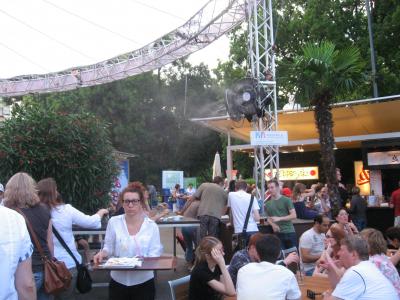 この催しは「フィルム・フェスティバル」。夏に音楽が外に出て行ってしまうので、それを補うためというのだろうか、オペラやニューイヤーコンサートなどの模様を大きなスクリーンで見せる。それで見るだけでなく、楽しくいっぱいやろうじゃないか、と言うことらしい。