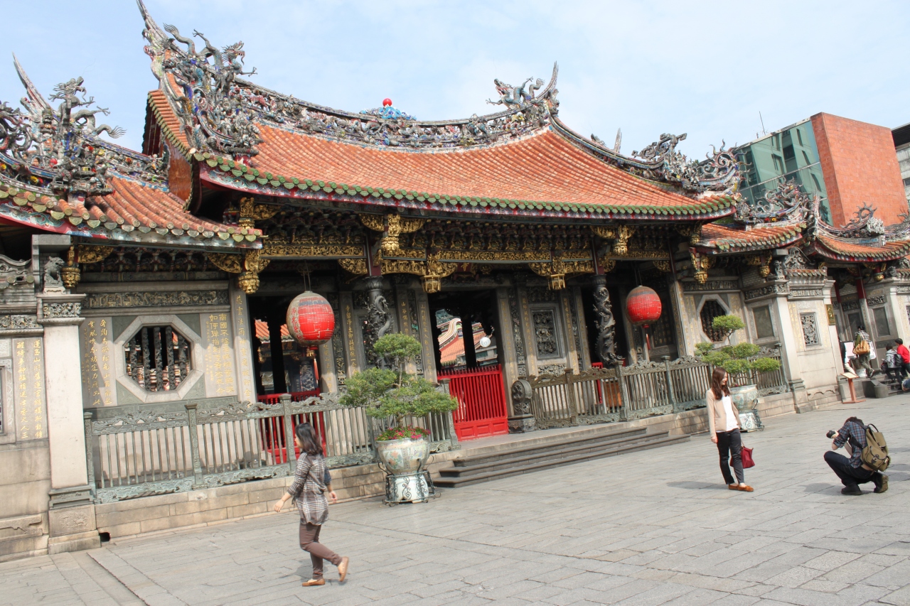 地下鉄「龍山寺」駅を降りて2~3分で着く。有名なお寺なので台湾に来たからには敬意を表さねばと訪ねた。こちらの人はとても信心深いように感じた。特に若い人の姿が多いように思えた。彩りの華やかな花々、果物、日々の暮らしの中の食料、菓子類など様々なものがお供えとして持ち込まれていた。そして手に手にお線香を持ち、静かに頭を垂れてお参りする姿は国民性を表しているように感じた。旅行者は友人でもいないと、その国に旅しても、普段の国民の生活に触れることは少ないが、こうした場所ではそれを感じることが多い。