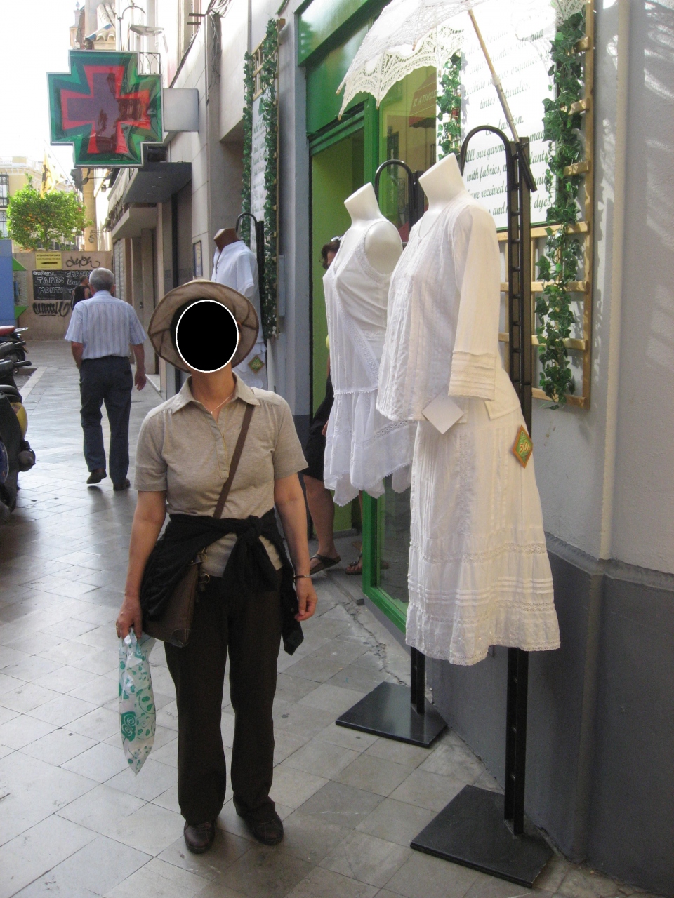 泊まっていたサンタ・クルス街のホテルの近くだったので通りかかったときに入ってみた。こぢんまりしたお店。店頭に白いブラウスとスカートが展示されていた。やっぱり暑い夏には、綿素材は一番。商品のほとんどが白の綿で袖口や襟ぐりは生地がカットレース風で可愛い。年代も幅広く着られそう。私が購入したのは24ユーロの襟のないシンプルなオーバーブラウス。他に枕カバーや、小物と言った物も置いてあった。