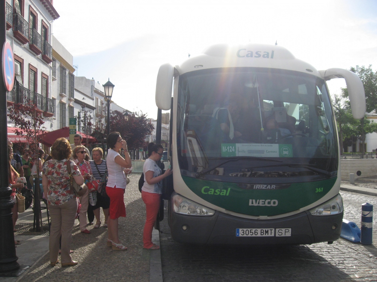 Casalの Mー124のバス。 カルモナまでは約50?というのに運賃は2,5ユーロ。乗るときに運転手に支払った。車内は観光バスのよう。乗り降りに大きな荷物がある場合は運転手が下方の横扉を開けるので自分で出し入れする。カルモナまでは約1時間ほど。乗り心地も悪くなく安価なのですっかりスペインバスのファンになった。