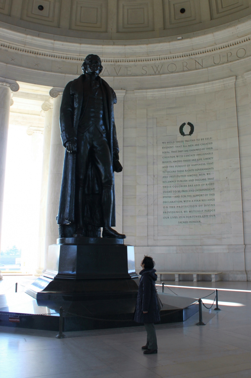 建物内部に、アメリカ第三代大統領ジェファーソンのブロンズ像が建っている。独立宣言の起草者としても有名だ。身長5.8?と特大サイズなので見上げないと顔は視界に入らない。