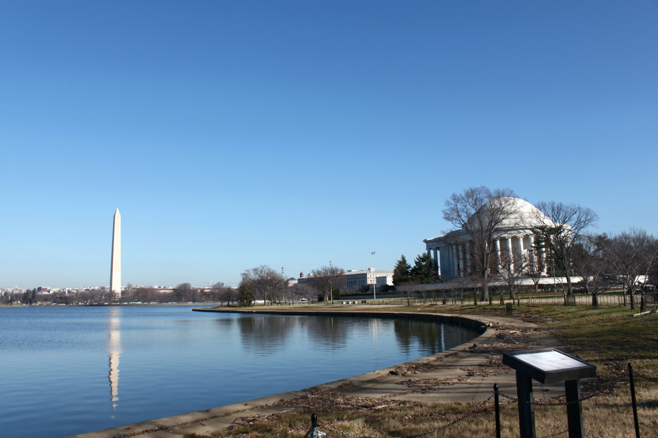 ワシントンDCの中心地、モールを冬の晴れた日、散策した。一帯は緑の広がる広い丘のような場所で真ん中に記念塔がある。