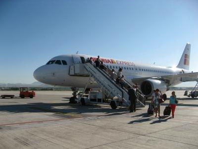 マドリードからイベリア航空で定刻5分前に到着。空港は広くて、数機見えるが、がらーーんとしている感じ。タラップを降りたら肥料か肥やしのような匂いがした。ここは農業の地と実感。飛行機は小さいから預けた荷物もすぐ出てきた。乗客の多くはバスなどに流れてタクシー乗り場は利用者が少なくすぐに乗れた。