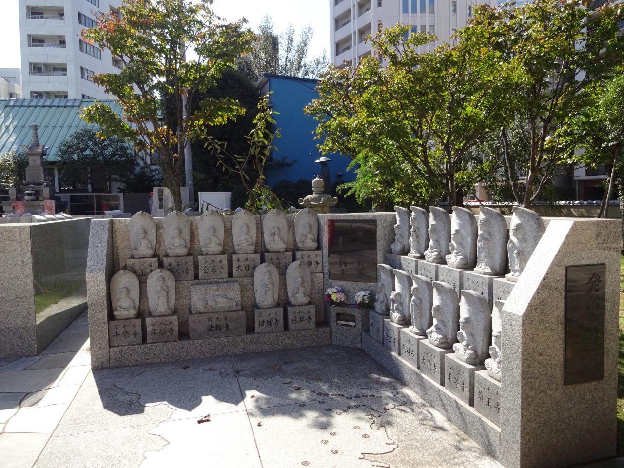 上野公園の中二ある弁天堂の境内に古い石碑が建ち、その横に説明板が置かれていました。