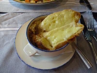 レストランでは私は体調が今ひとつだったので、オニオングラタンスープを頼んだ。
