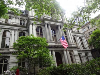 スクール通りに沿って歩いていると緑の庭の奧に立派な威厳のある建物が、アメリカのコックも見えました。